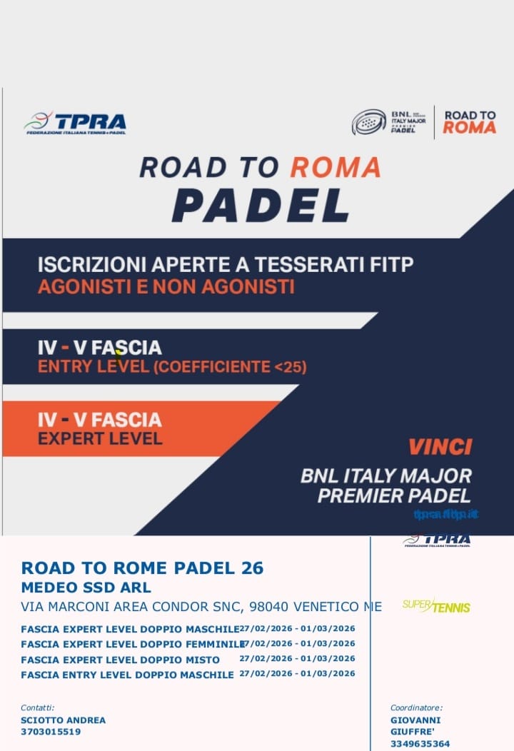 🗓️ Dal 27 Febbraio al 01 Marzo, partecipa al tappa Road To Rome TPRA 2026.